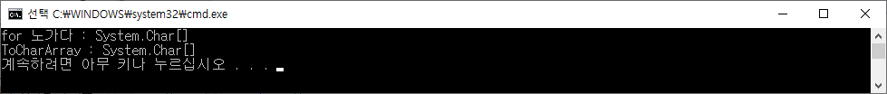 Console.WriteLine("for 노가다 : " + Cstr1);