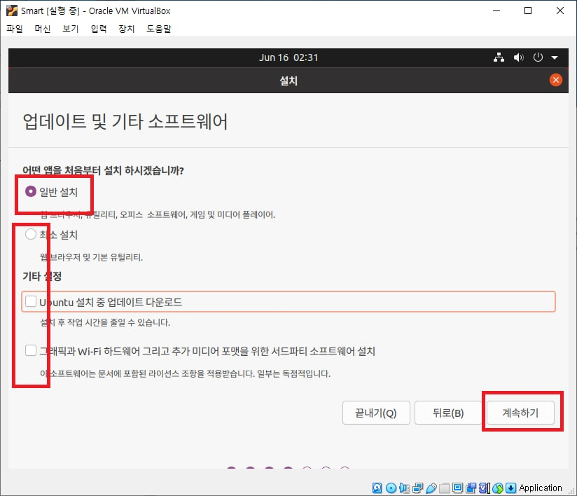 나머지 설정은 상관 없으니까 재부팅 후 알아서 하시고