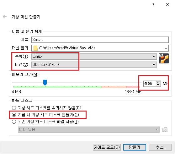 10 GB 충분 할것 같으니까 10GB 사용 더많은 메모리가 필요할 것 같으면 맘대루 하시고,