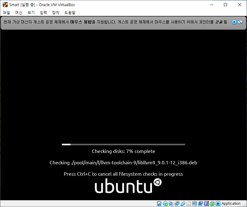 가상 머신 클릭 하면 마우스가 가상머신에 잡힌다.