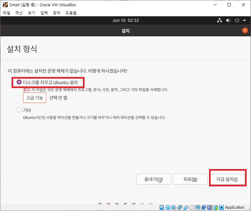 나머지 설정은 상관 없으니까 재부팅 후 알아서 하시고