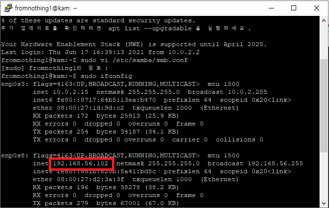 윈도우에서 우분투 파일 접근 설정(samba 설정)
