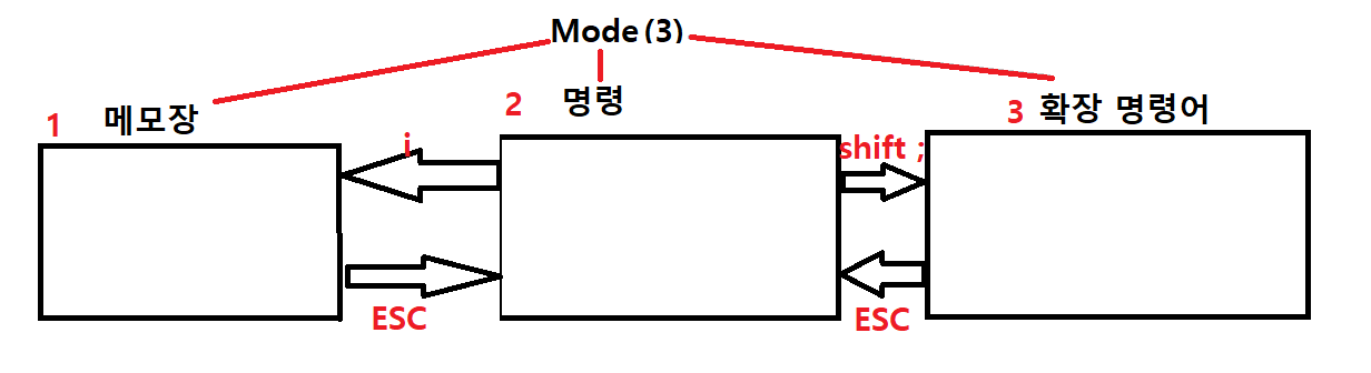 vi 편집기는 3 가지 mode 가 존재 하고 이를 이해 해야지 vi 편집기를 자유 자재로 다룰 수 있다.