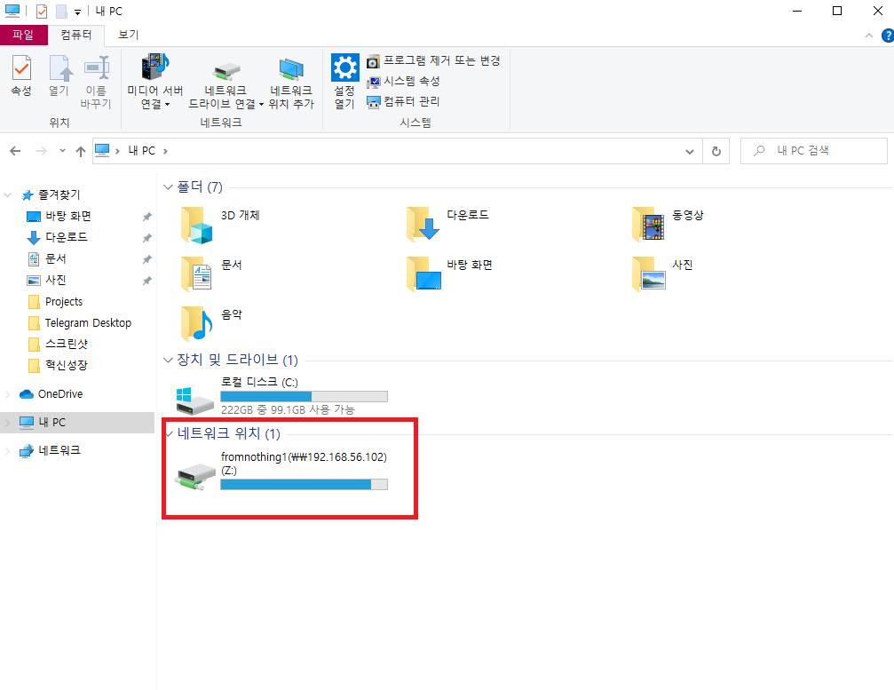 드라이브 만들어 놓으면 탐색기로 접근하기 쉽다.