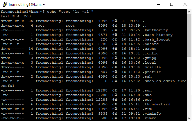 test 문자 찍히고 ls -la 이 실행 되는 것을 알 수 있다.