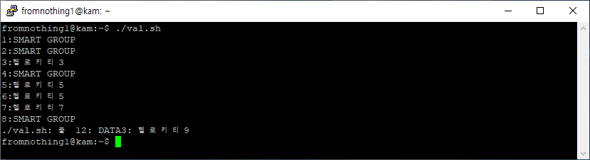 11 echo "8:${DATA1:?"헬로키티8"}"