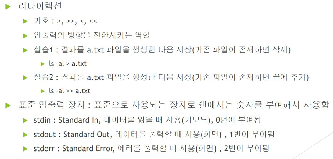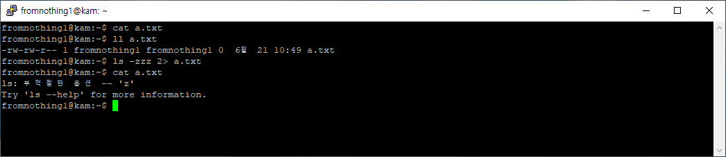 즉 에러는 표준 출력 스트림2 번의 출력을 a.txt 로 방향을 틀어주는 것이다.