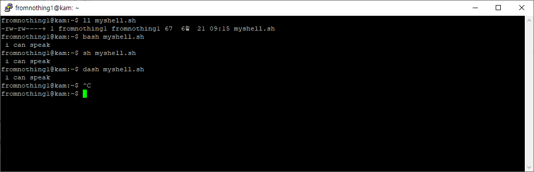 즉 sh myshell.sh 와 같이 실한다면 #!/bin/bash 무시되고 sh쉘로 실행된다는 의미