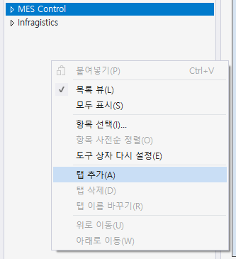 탭추가 해서 MES Control 추가