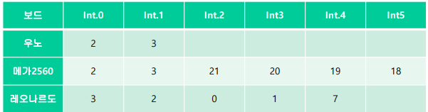 우노는 2 , 3 번 핀에만 interrup 생성 가능