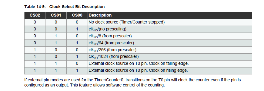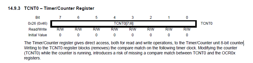 timer 0 의 레지스터를 보도록하자 (다른 카운터 레지스터 사용법은 비슷하기 때문에 datasheet 참고바람)