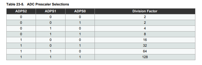 • Bits 2:0 – ADPS2:0: ADC Prescaler Select Bits