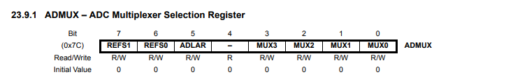ADC를 사용할 때는 항상 0으로 clear 되어야 한다. 1로 set 된다면 아날로그 비교기가 작동하고 ADC는 꺼진다.