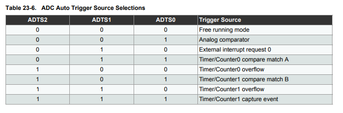 • Bit 2:0 – ADTS2:0: ADC Auto Trigger Source