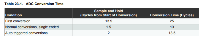 sample and hold 에 소모되는 클럭수는 conversion time 안에 포함된다.