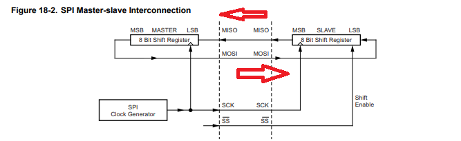 그후에는 SPDR 레지스터에 전송할 데이터를 입력하면 자동으로 8bit Shift 하여 데이터를 전송한다.