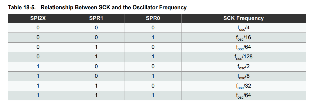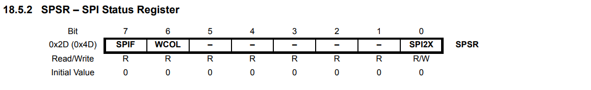 •Bit 0 – SPI2X: Double SPI Speed Bit