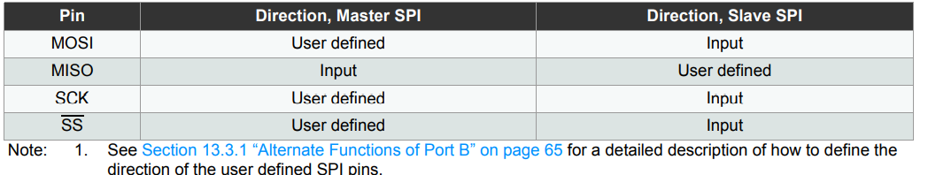 즉 Master 에서 slave 모드로 변경하고 싶지 않다면 SS 핀은 출력으로 설정해 놓아야 한다.