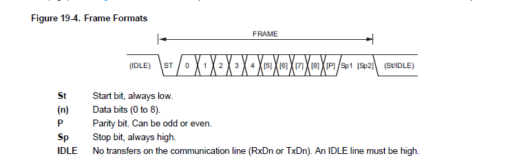 UART 통신에서 데이터는 위와같은 형식을 가지고 있다.