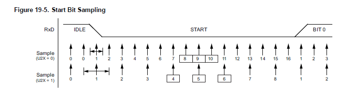 비동기 모드에서는 데이터 셈플링할때 정확한 검출을 위해서 보드레이트의 16배 또는 5배 주파수를 이용해서 샘플링한다.