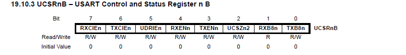 19.10.3 UCSRnB – USART Control and Status Register n B (0xC1)