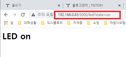 접근 주소를 led/on 하면 전구가 켜지고 led/off 하면 전구가 꺼진다.