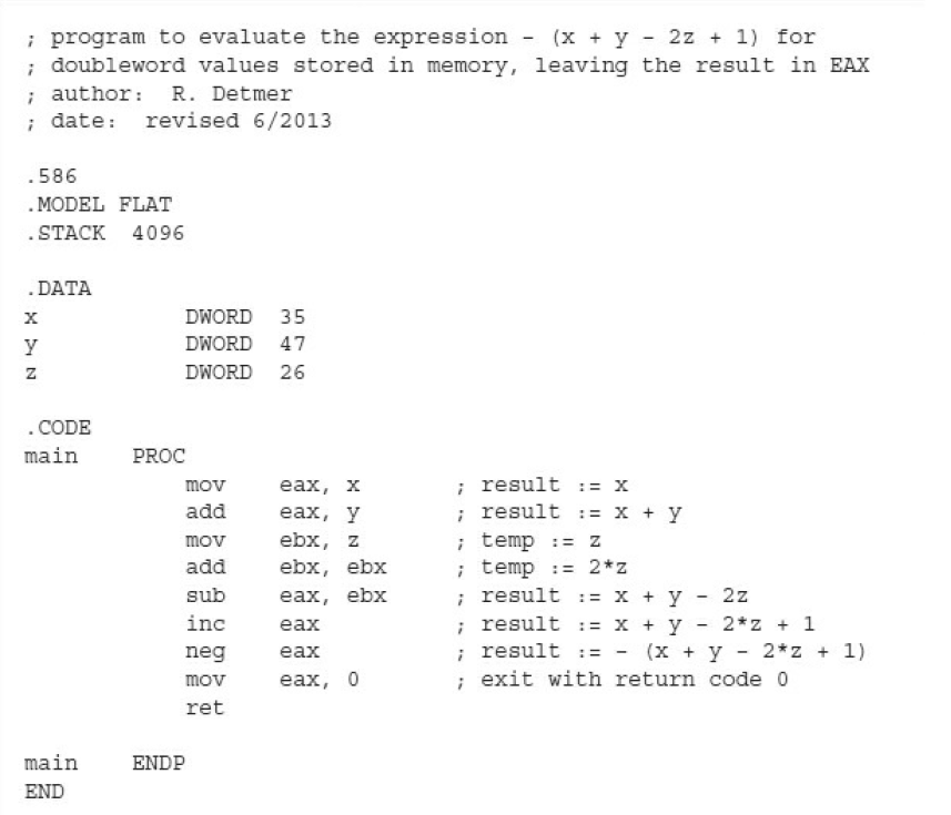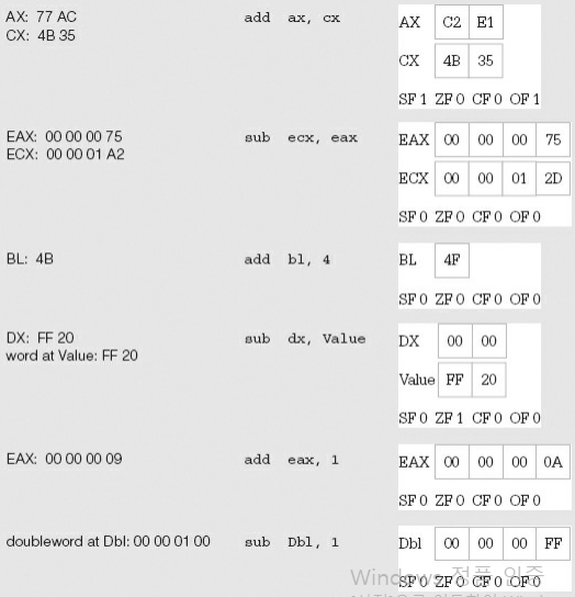 명령어 : add , sub , inc ( 1 증가) dec( 1 감소 ), neg( +,- swap)