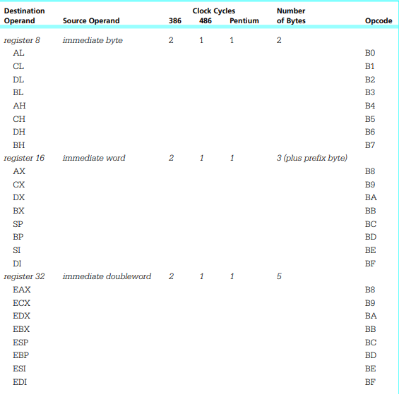 2.immediate to memory or register(indirect)
