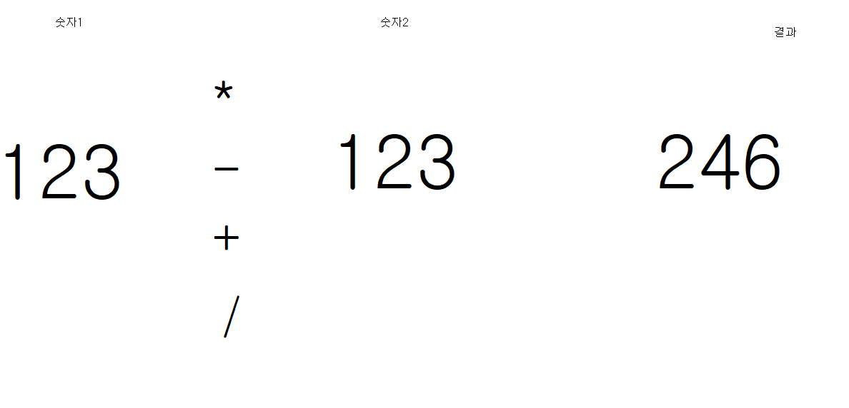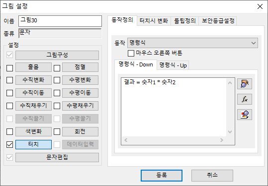 위에와 같이 문자에 명령식을 등록 해주면 , 문자를 누를때마다 해당 사칙연산이 수행된다.