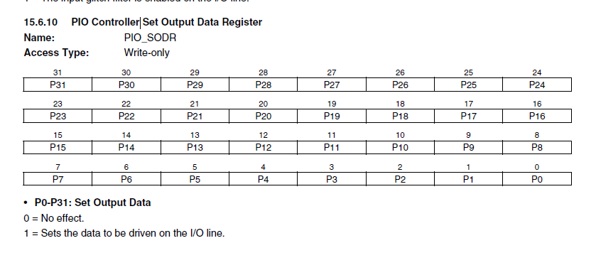 #define PIOA_SODR (*(volatile unsigned int *)0xFFFFF430) // 켜기