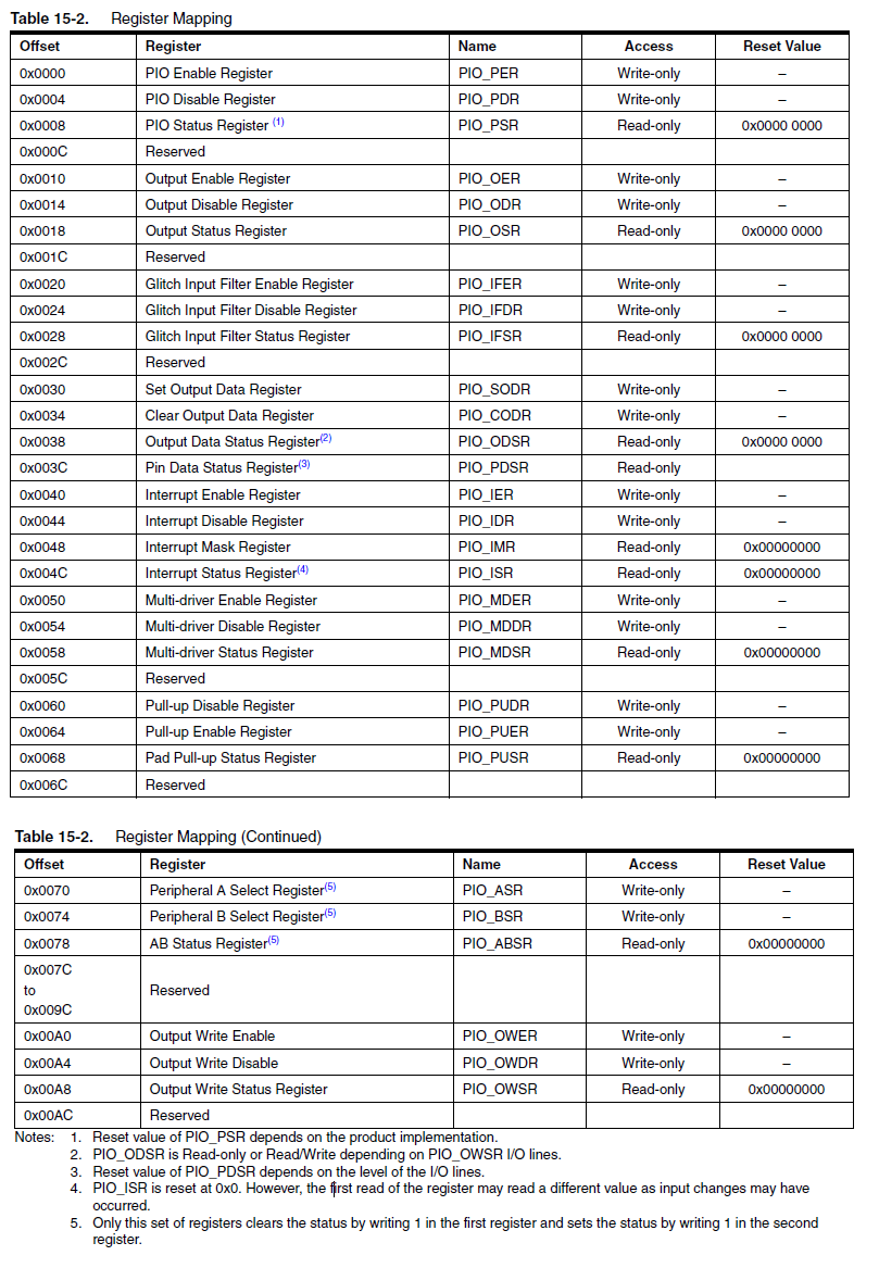 #define PIOA_CODR (*(volatile unsigned int *)0xFFFFF434) // 끄기