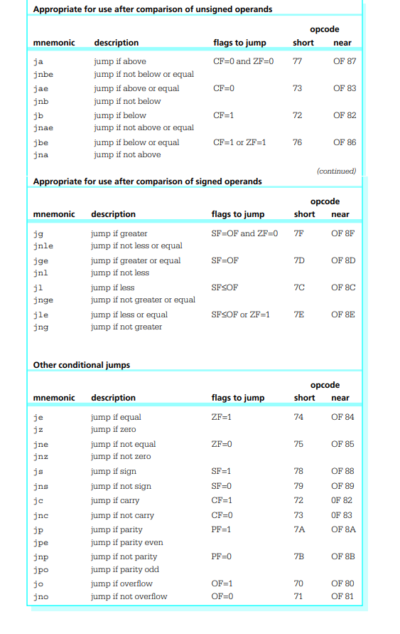 jz (ZF 플레그가 1 일 때 점프 -> 계산 결과가 0일 때 점프)