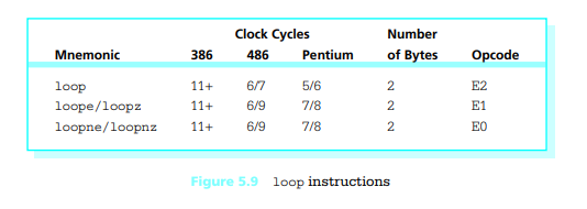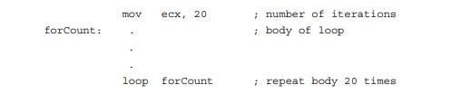• if the new value in ECX is zero, then execution continues with the statement following the loop instruction