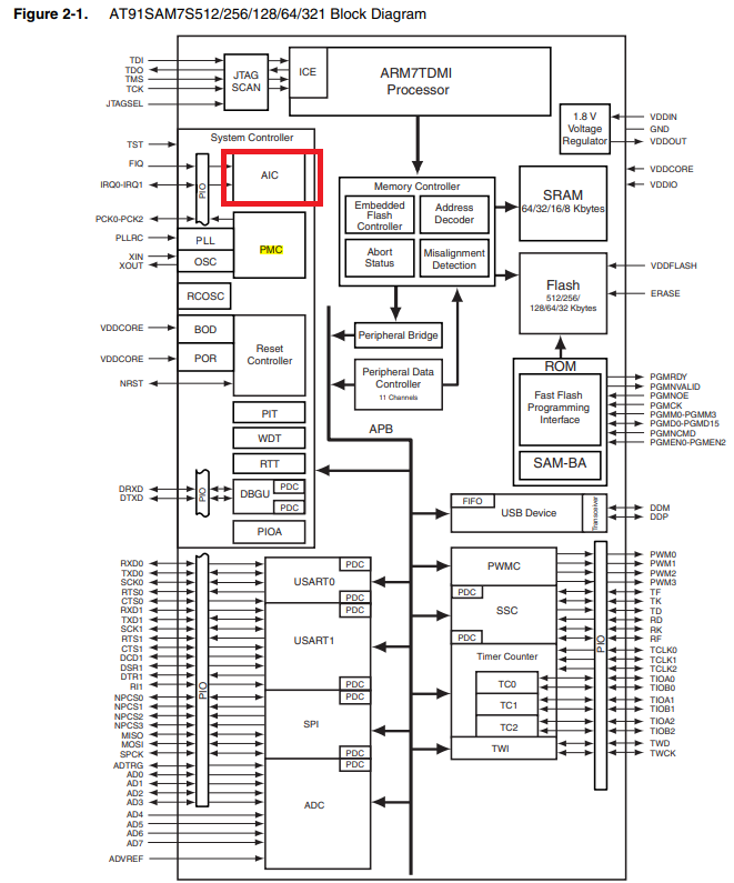 때문에 interrupt sources 를 FIQ, SYS(소프트웨어 인터럽트), PID2 to PID31. 라고 부른다.