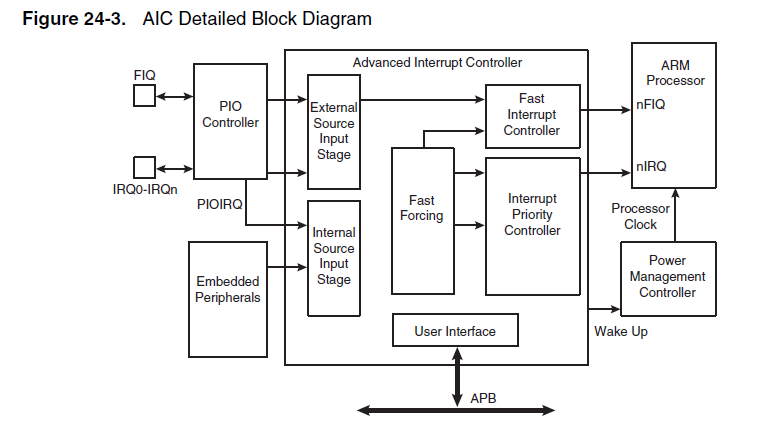 interrupt with the Advanced Interrupt Controller and for the control of the peripheral clock