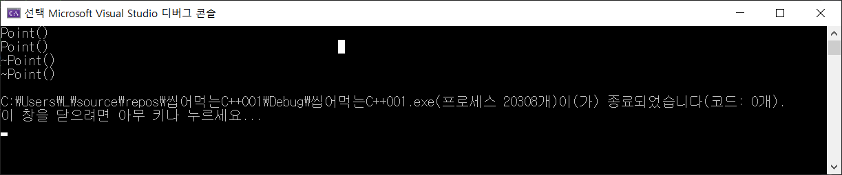 Point(1, 2); // 세미콜론을 만나면 소멸함