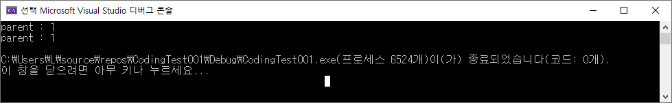 재미있는 점은 컴파일러는 parent 포인터로 받은 child 클래스를 parent 클래스로 인식하고 overide 되지 않은 함수를 호출 하는 것이다. 변수도 마찬가지
