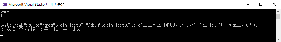 재미있는 점은 컴파일러는 parent 포인터로 받은 child 클래스를 parent 클래스로 인식하고 overide 되지 않은 함수를 호출 하는 것이다. 변수도 마찬가지