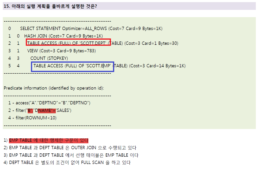 파란 상자인 SOCTT.EMP TABLE 보다 선행테이블로 실행되고 있다.