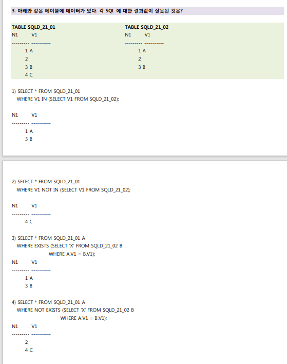 3 EXISTS 조건절에서 NULL 값은 인정하지 않음
