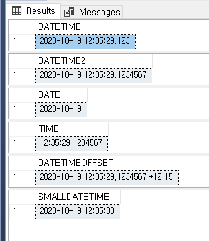 SELECT CAST('2020-10-19 12:35:29.123' AS SMALLDATETIME) AS 'SMALLDATETIME'