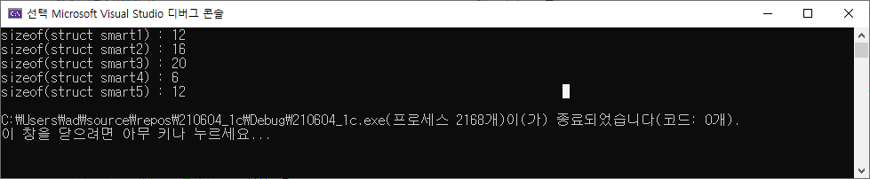 printf("sizeof(struct smart4) : %d\n", sizeof(struct smart4));