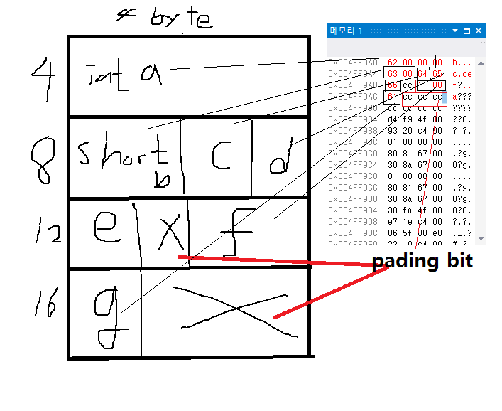 3. 4byte 로 딱 안떨어지면 다른 4byte 메모리에 저장한다.