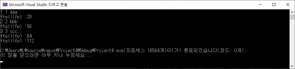 따라서 파읽을 읽은후 ftell 의 값은 28 씩 증가한다.