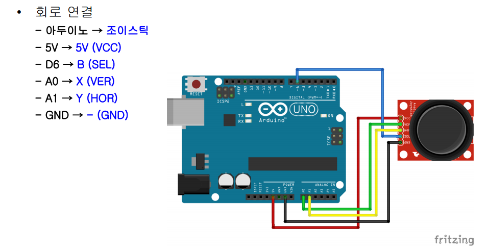 select = digitalRead(6); // 버튼, 눌렀을 때 = LOW, 뗐을 때 = HIGH