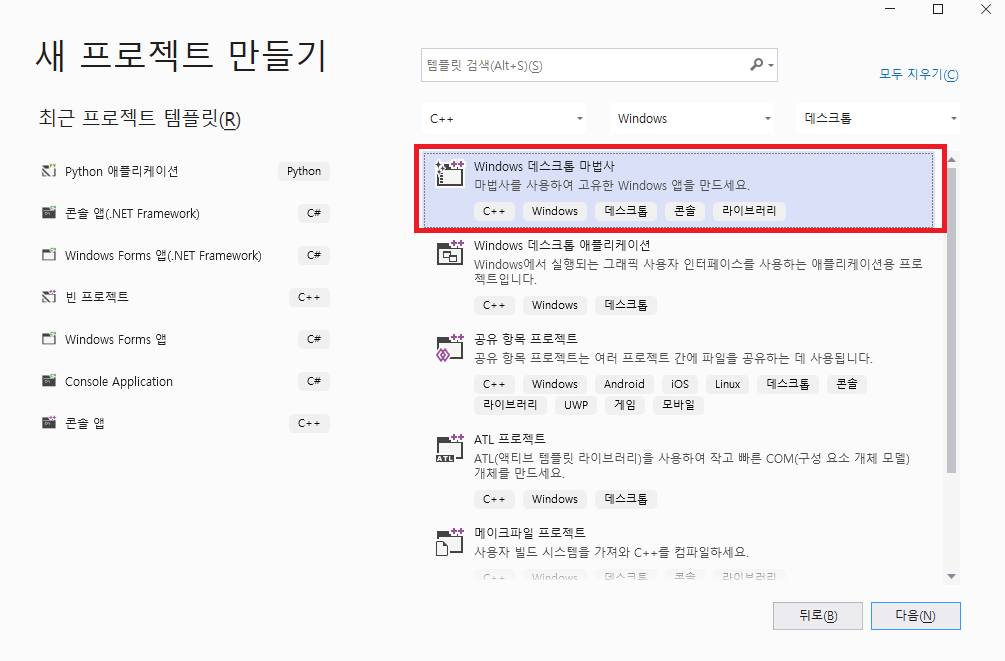 비쥬얼 스튜디오 새프로젝트 만들기 ->